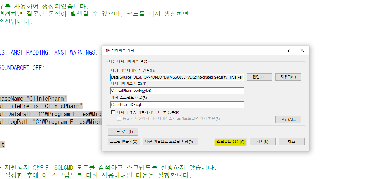 VS에서 게시 할 때 스크립트 생성 + SSMS 쿼리 편집기에서 SQLCMD 명령을 사용하는 방법