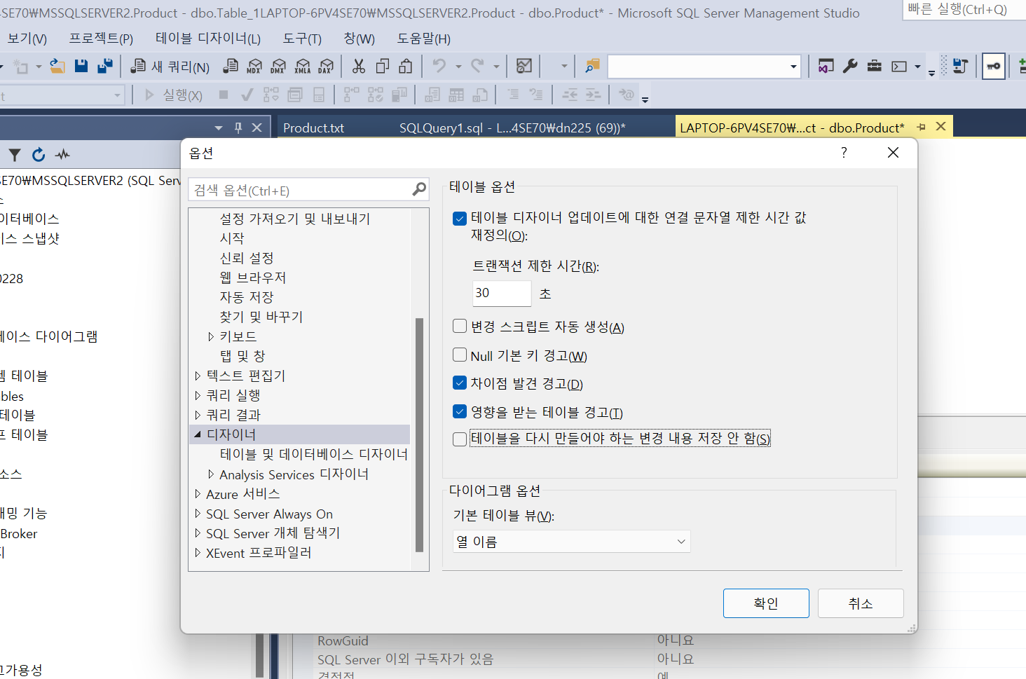 db 관리를 할 수 있는 관리자는 소수, 정해져 있음. 플젝에서 sql 혹은 데이터가 수정 된 경우, 본인이 db 접근 권한이 있으면 바로 하면 됨. 그러나 직접 db에 접근 권한이 없는 경우에는 db 담당자에게 수정된 script 파일만을 전달한다. ex) 테이블이나 sp create, alter 스크립트 이럴 때 Vs에서 게시할 때 스크립트 생성을 통해서 현재 연결된 db와 어떤 것이 다른지 확인 가능. (만약 여기서 데이터가 손실되는 코드일 경우, 고급>일반> 데이터가 손실되면 증분 배포 차단을 먼저 풀고 진행) 그러면 이렇게 스크립트 생성됨 복사 후 내 ssms 접근, 붙여넣기 sqlcmd 모드로 수정사항 적용. SQLCMD 모드를 사용하면 쿼리 편집기에서 직접 SQL Server Manageme..