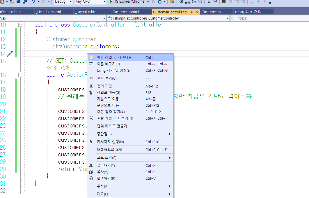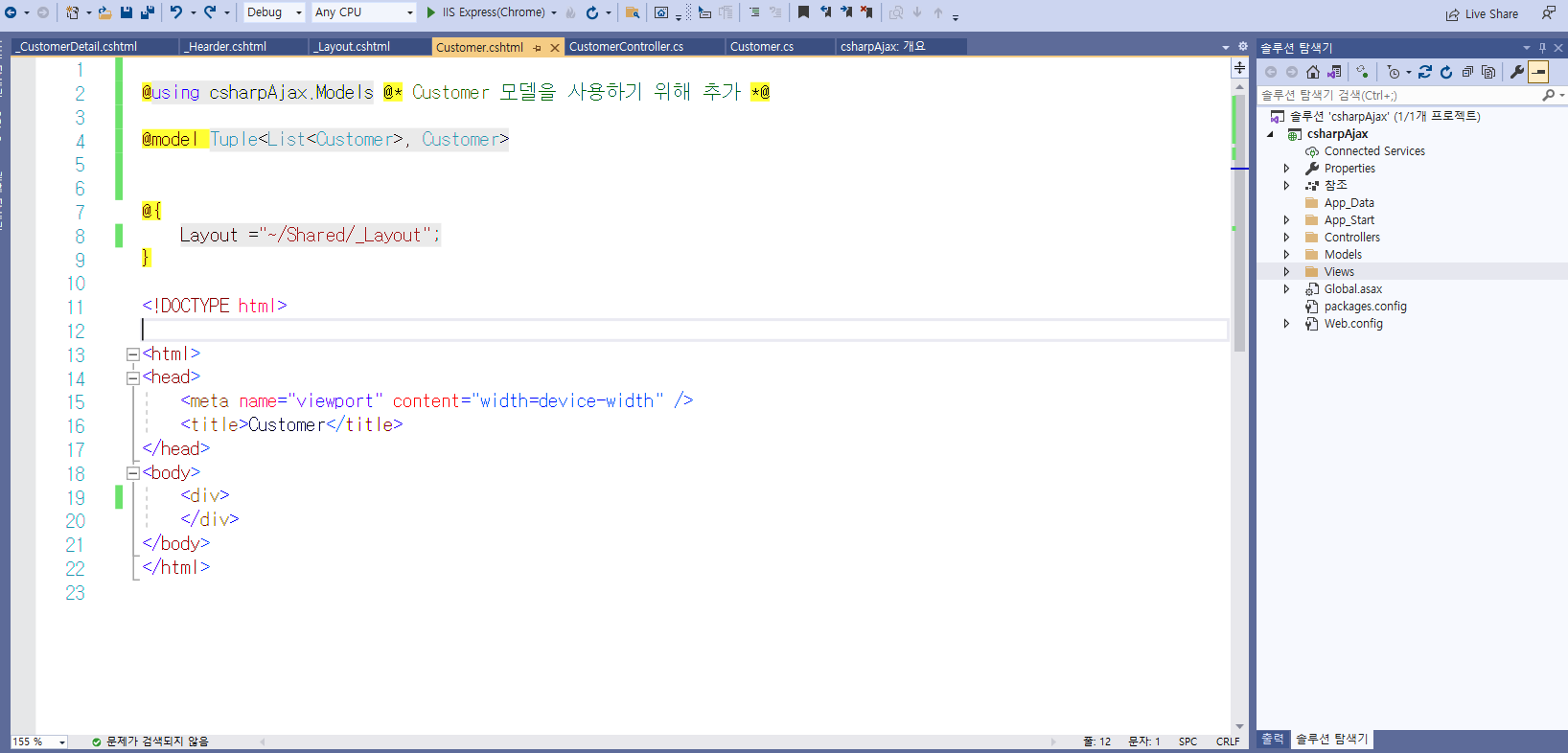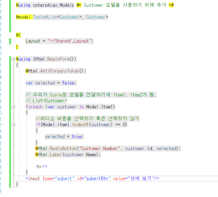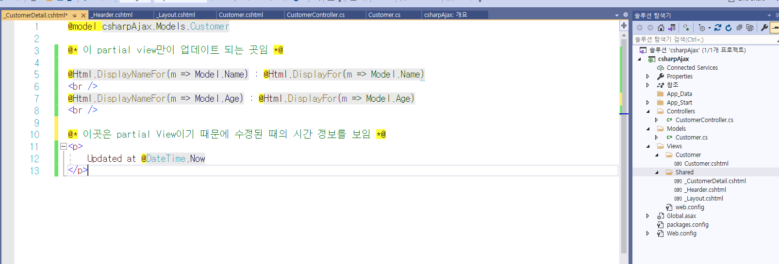 @model csharpAjax.Models.Customer 이 코드를 추가해주는 거임 ㅇㅇ..