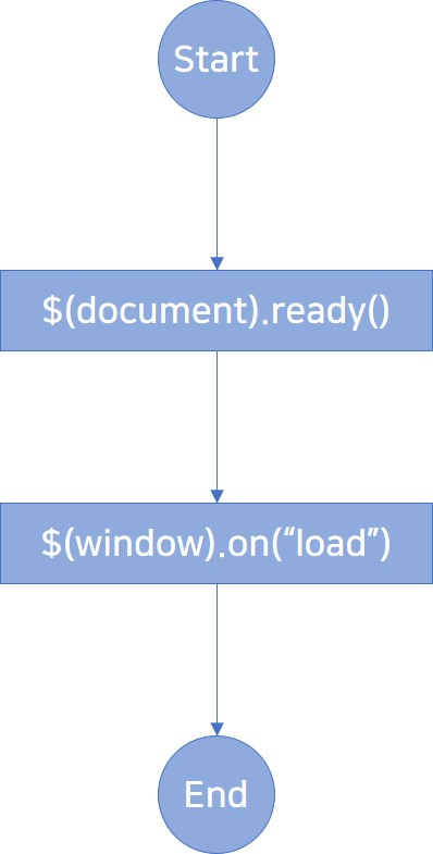 위 설명에 적어놓은 것 처럼 DOM객체가 JavaScript를 실행할 수 있는 상태가 된다면 $(document).ready를, 모든 페이지에 대한 준비가 완료된다면 $(window).on("load")함수가 실행이 된다는걸 확인할 수 있습니다.